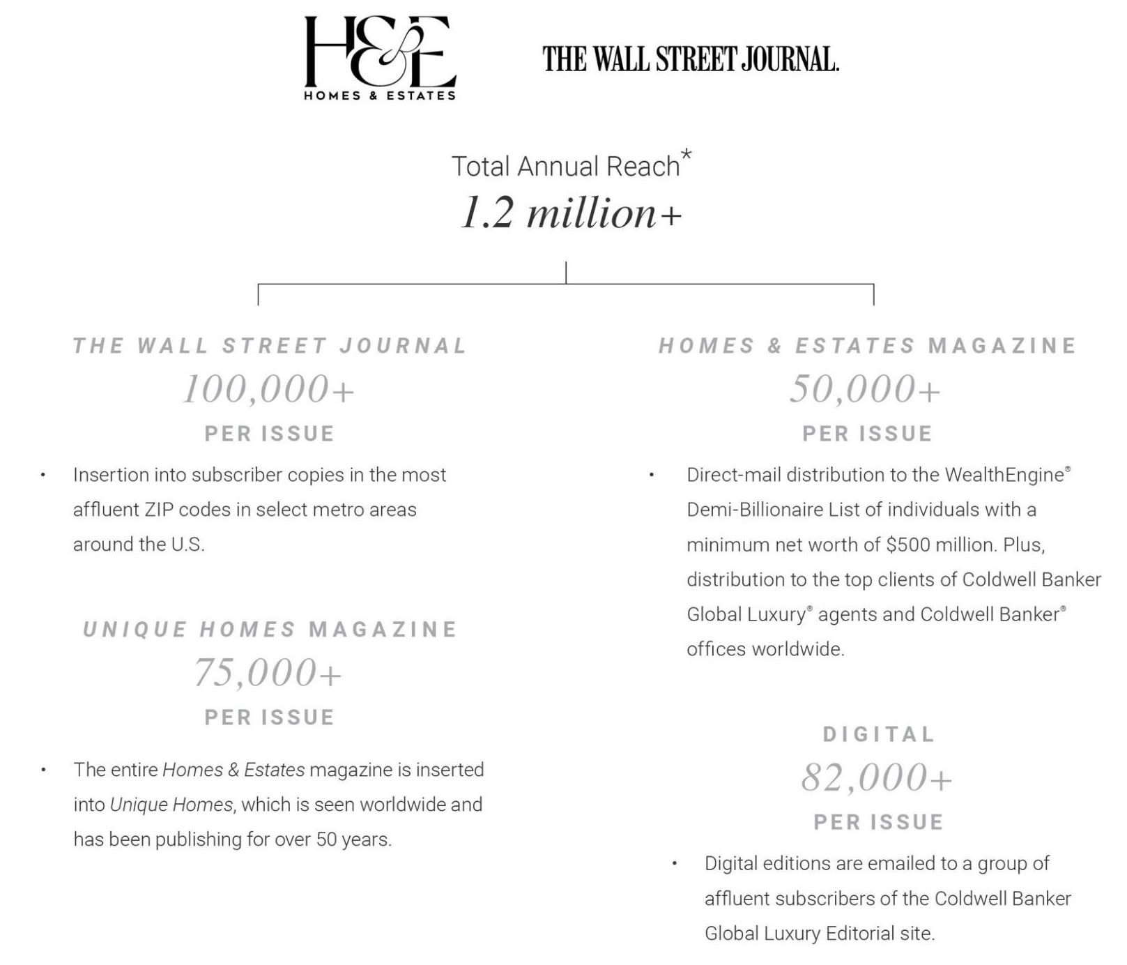 Distributed four times a year and paired with The Wall Street Journal, Homes & Estates offers stories of lifestyle inspiration in a range of luxury pursuits, including real estate, architecture, design, art, fashion, culture and travel.