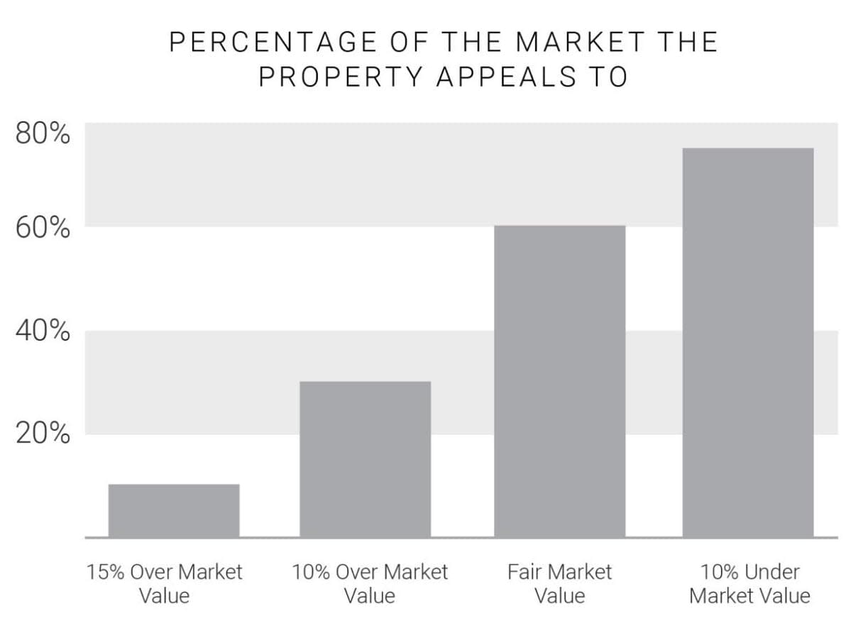 If the asking price of a property increases beyond fair market value, the pool of potential buyers decreases the number of showings and the percentage of qualified buyers viewing your home.